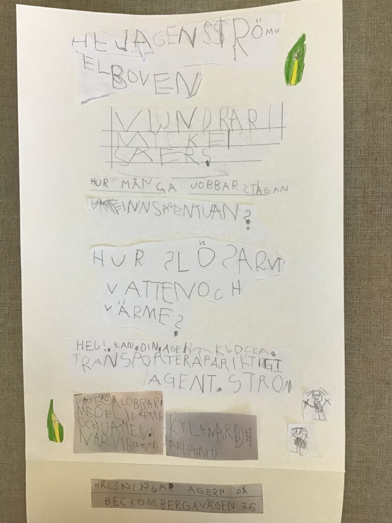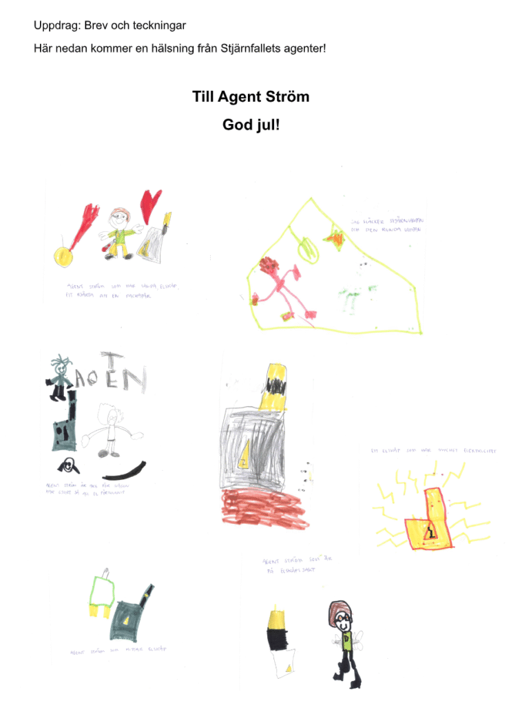 Låt barnen rita teckningar av Agent Ström och El´Boven. Eller skriv ett brev och skicka till Agentstugan. Här ser ni några exempel som förskolorna skickat in.