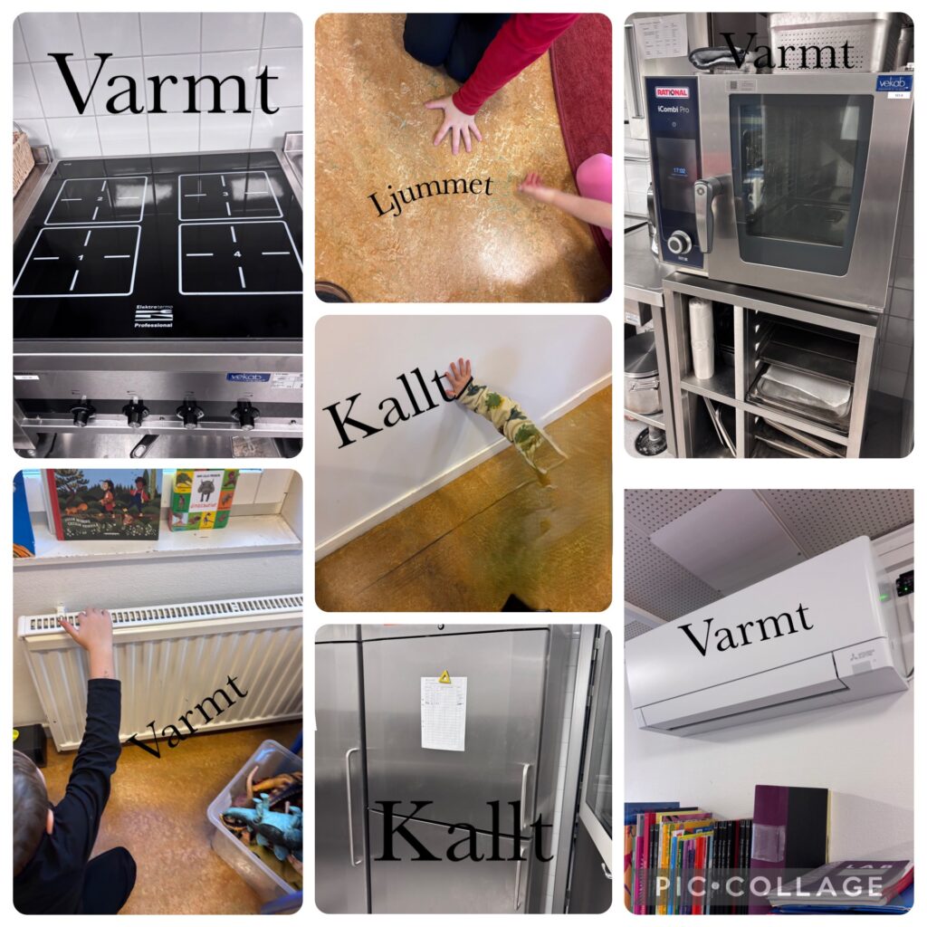 Hitta saker och platser som har en särskild temperatur på förskolan. Kallt, varmt eller ljummet. Varför har de just den temperaturen? Efter att ni letat och funderat kan barnen rita ett kollage eller bygga något av det ni hittat. Kanske kan ni göra en temperatur-utställning på förskolan.