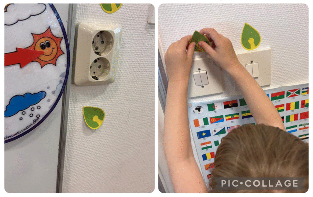 Gå runt på förskolan och hitta alla saker som har sladd. Sätt ett klistermärke på sakerna så ni kommer ihåg vilka de är. Räkna hur många ni hittat! Hur många är lampor? Hur många används till saker som låter? Kanske kan ni göra en lista och sätta upp. De här sakerna behöver ni hålla ett öga på så att de inte slösar el i onödan.