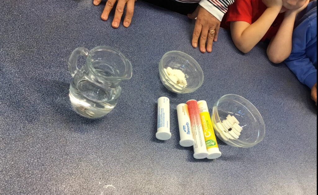 Ta fram valfritt antal brustablettsrör, brustabletter och vatten. Börja gärna med att visa i ett glas med vatten hur en brustablett löses upp, så barnen får se hur det ser ut. Lägg ner en brustablett i varje rör och fyll med vatten, ungefär två tredjedelar vatten. Sätt snabbt på locket och vänd upp och ner så att korken är mot bordet. Se till att backa undan så att ingen träffas av raketen!