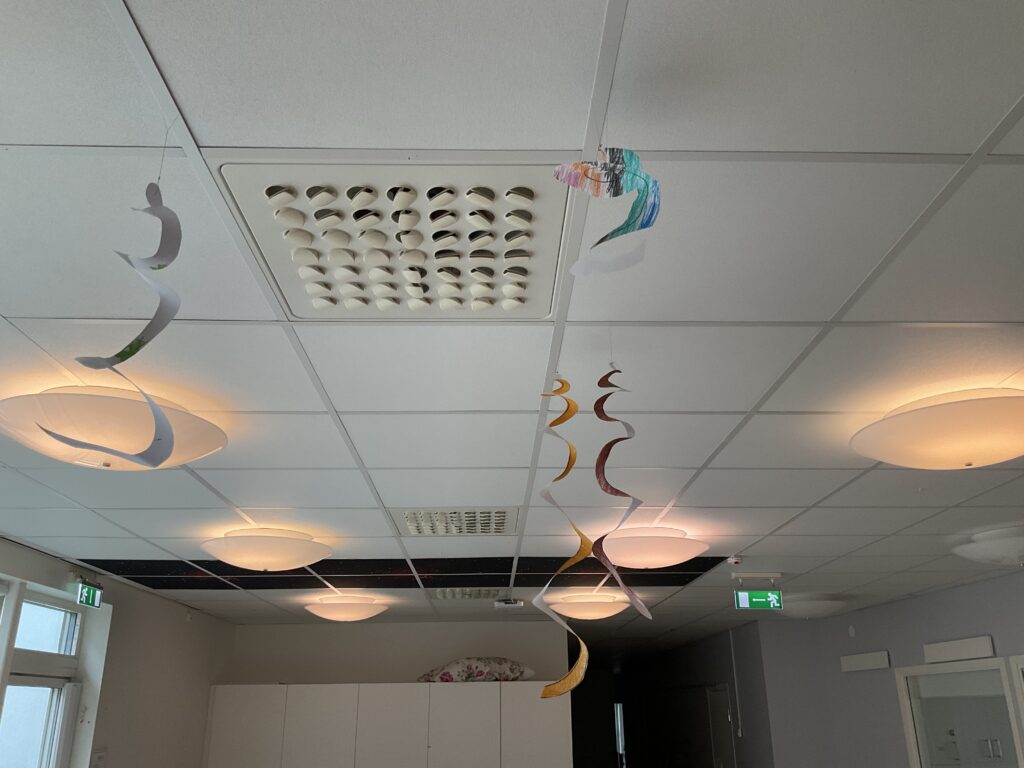 Gör en snurra genom att klippa papper i en spiral och sätt fast en tråd i ena änden. Leta upp var ventilationen är i ert samlingsrum och sätt upp snurrorna vid den. Dessa kommer snurra tjusigt tack vare draget från ventilationen. Ett roligt sätt att tydliggöra hur luften rör sig i rummet.